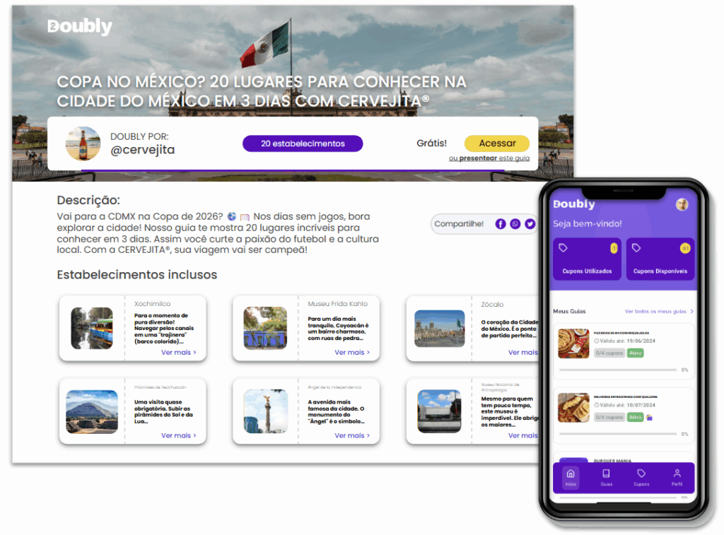 A Guidee é a sua ferramenta para criar, distribuir e medir resultados de Guias digitais com opções para incluir ofertas, cupons e check‑in, conectando branding+influência a trade marketing e sell‑out — em múltiplas praças, idiomas e moedas.