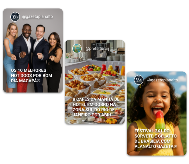 Crie Guias assinados, co-assinados ou impulsionados, com alcance local e cupons rastreáveis que transformam presença digital em conversões no PDV.